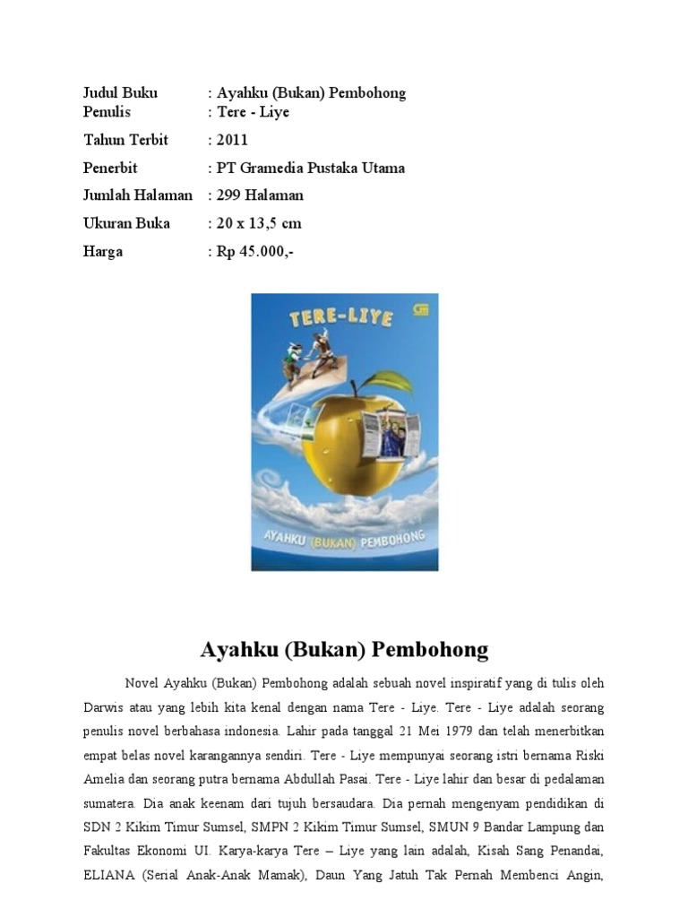 Tere Liye Lahir Di Lahat Indonesia 21 Mei 1979. Download Novel Ayahku bukan Pembohong karya Tere Liye pdf Sinopsis Novel. AYAHKU BUKAN PEMBOHONG PDF - Latest and most complete edition of Ayahku Bukan Pembohong digital Book by Tere-Liye on - EN.